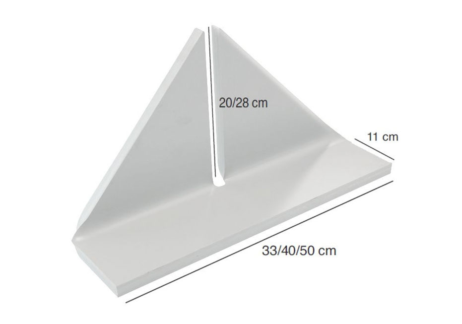 I piedini possono ospitare pannelli sandwich di lastrapiuma con spessore 10, 15 o 20 mm e sono disponibili in 3 misure differenti con base 33, 40 oppure 50 cm per maxi pannelli autoportanti.