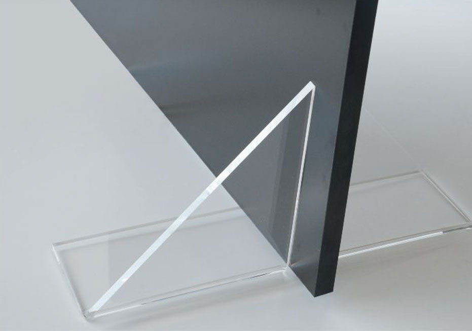 La coppia di piedini TWIN è disponibile in Plexiglass trasparente o in PVC-HD grigio.