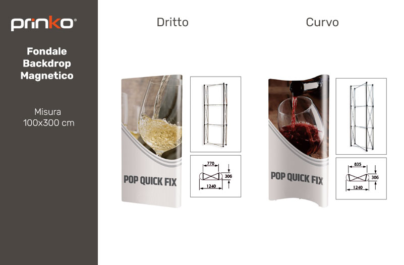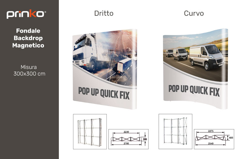 Questo prodotto è l'ideale allestimento per fiere, eventi, expo o per situazioni dove si necessita uno spazio promozionale completo per la comunicazione della tua attività.