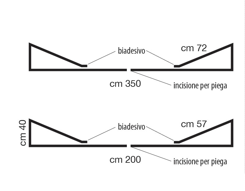 • Struttura autoportante personalizzata in polionda bianco, con preincisioni per facilitare l'apertura e la chiusura; il pannello centrale è disponibile in due formati, ed il bioadesivo in dotazione ne semplifica l'assemblaggio.
