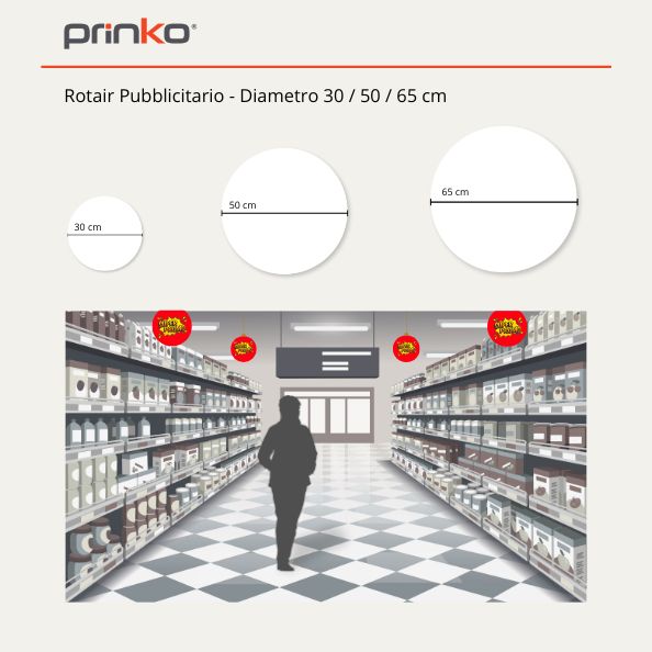 Stampa Rotair pubblicitari in cartone da 600gr teso, perfetti per negozi, centri commerciali, fiere ed eventi.