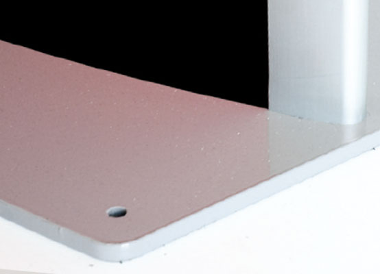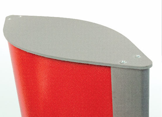 • E' composto da una pesante base in ferro ancorata a profilati estrusi in alluminio con pannelli in PVC spessore 3mm e provvisto di tappo superiore.