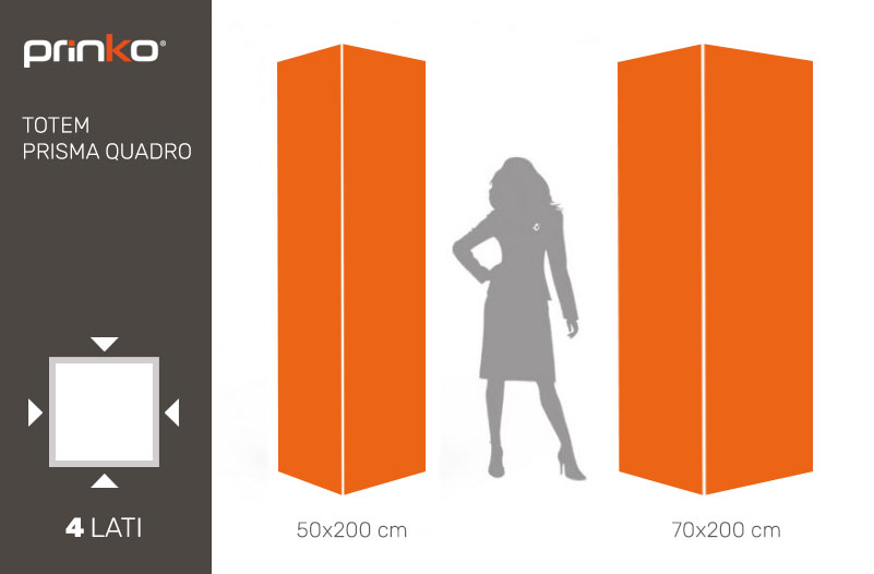 Totem prisma base quadrata in materiale plastico, disponibile in 2 dimensioni