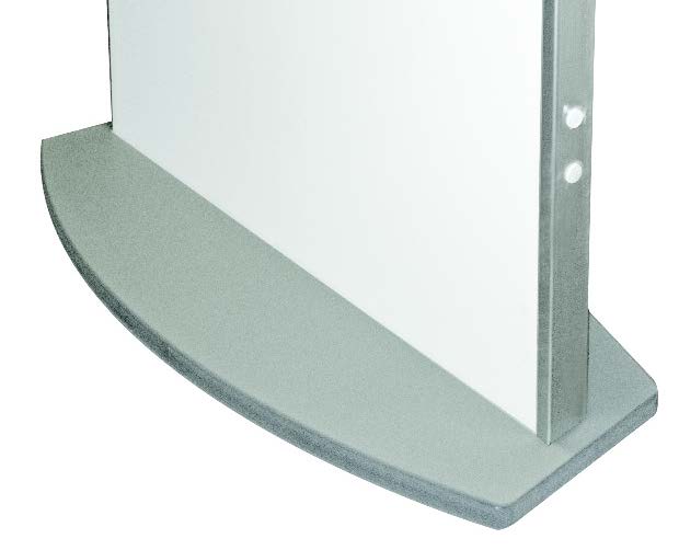 • Realizzato con profili in alluminio da 40mm dove è possibile far alloggiare i pannelli in forex di spessore mm 5 inclusi, e base in PVC-HD.