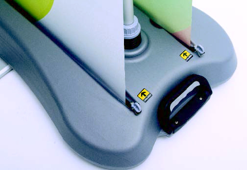 E' possibile posizionare questo roll up tranquillamente in esterno, grazie alla base in plastica nera riempibile con acqua o sabbia!!
