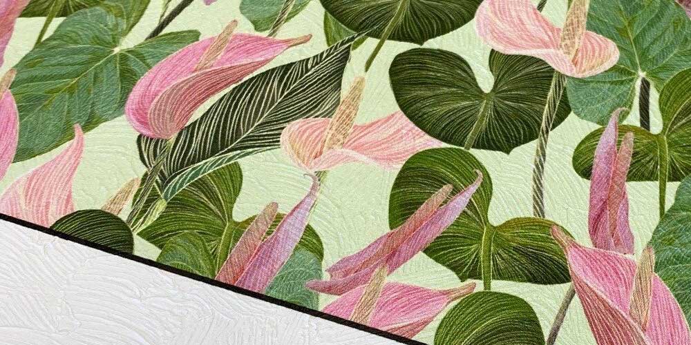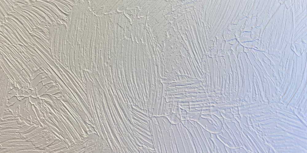 Stampa in alta definizione su carta da parati in vinile con finitura goffrata ad effetto intonaco spatolato facilmente applicabile grazie al suo supporto in TNT.