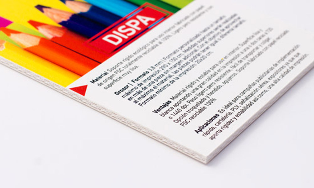 La stampa su DISPA consente di relizzare molti prodotti con caratteristiche uniche: è un materiale leggero, resistente e versatile che viene spesso utilizzato per la creazione di display pubblicitari, cartelli e pannelli promozionali.